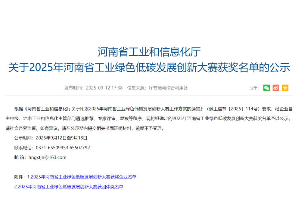 詳細(xì)內(nèi)容近日,2025年河南省工業(yè)綠色低碳發(fā)展創(chuàng)新大賽圓滿(mǎn)落幕,公司憑借在綠色低碳領(lǐng)域的卓越創(chuàng)新和扎實(shí)服務(wù),榮獲本次大賽二等獎(jiǎng),是7個(gè)二等獎(jiǎng)中唯一獲獎(jiǎng)的省外機(jī)構(gòu)。這一榮譽(yù)不僅體現(xiàn)了公司在推動(dòng)工業(yè)綠色轉(zhuǎn)型方面的技術(shù)...