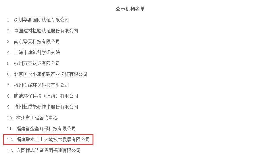 2017年9月21日,福建省發(fā)改委發(fā)布了《福建省碳排放權(quán)交易工作協(xié)調(diào)小組辦公室關(guān)于福建省第二批碳排放第三方核查機構(gòu)征選結(jié)果的公示》。經(jīng)福建省經(jīng)濟信息中心組織專家評審,我司分支機構(gòu)福建碧水金山環(huán)境技術(shù)發(fā)展有限...
