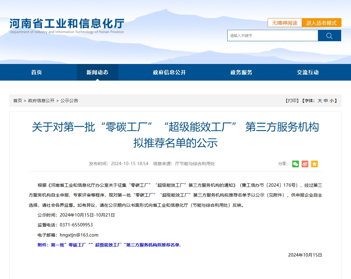 2024年10月15日,河南省工業(yè)和信息化廳發(fā)布了《關(guān)于對(duì)第一批“零碳工廠”“超級(jí)能效工廠” 第三方服務(wù)機(jī)構(gòu)擬推薦名單的公示》。我司成功入圍第一批“零碳工廠”“超級(jí)能效工廠” 第三方服務(wù)機(jī)構(gòu)擬推薦名單。北京科吉...