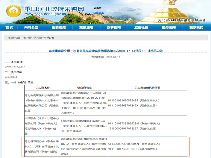 2022年5月12日,河北省政府采購(gòu)網(wǎng)公布了“碳市場(chǎng)建設(shè)專項(xiàng)—河北省重點(diǎn)企業(yè)碳排放報(bào)告第三方核查(7-12標(biāo)段)”中標(biāo)結(jié)果公告,科吉與河北省節(jié)能協(xié)會(huì)組建的聯(lián)合體成功中標(biāo)。 科吉是國(guó)內(nèi)最早從事重點(diǎn)排放單位碳排放核查...