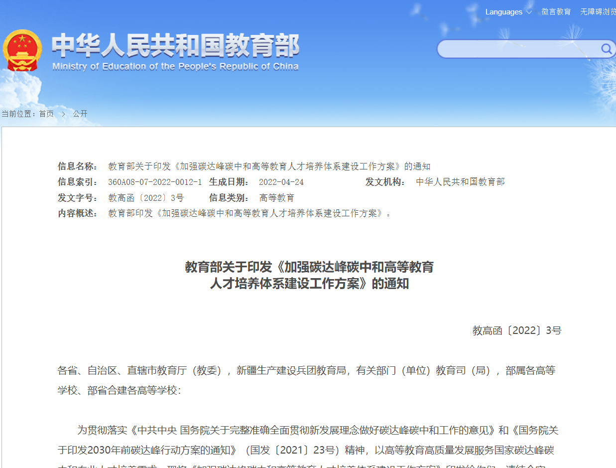 近日,教育部印發(fā)《加強(qiáng)碳達(dá)峰碳中和高等教育人才培養(yǎng)體系建設(shè)工作方案》,加強(qiáng)綠色低碳教育、打造高水平科技攻關(guān)平臺、加快緊缺人才培養(yǎng)等9項(xiàng)重點(diǎn)任務(wù),詳情如下:加強(qiáng)碳達(dá)峰碳中和高等教育人才培養(yǎng)體系建設(shè)工作方...